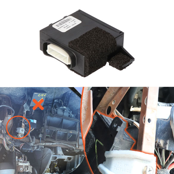L'immagine sottostante illustra la posizione del modulo antiavviamento nella plancia della vettura. Attenzione a non confonderlo con il modulo della chiusura centralizzata, posizionato poco sotto e molto simile per colore e forma!